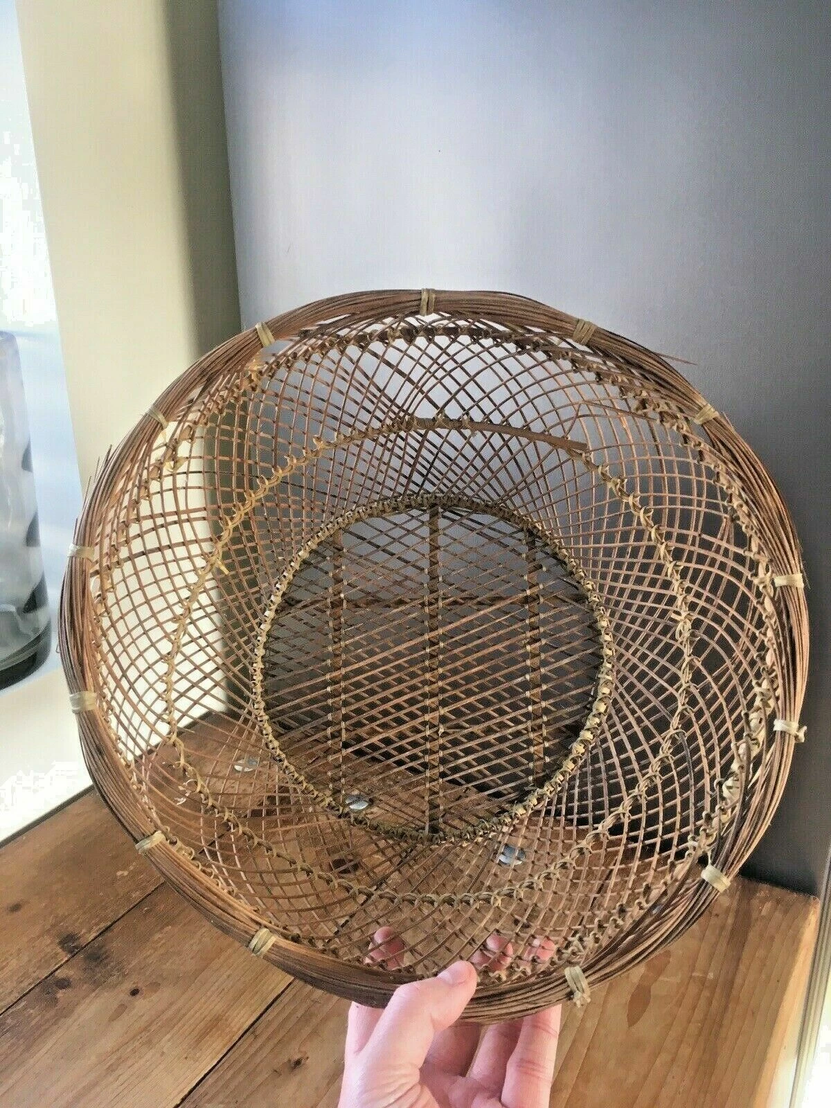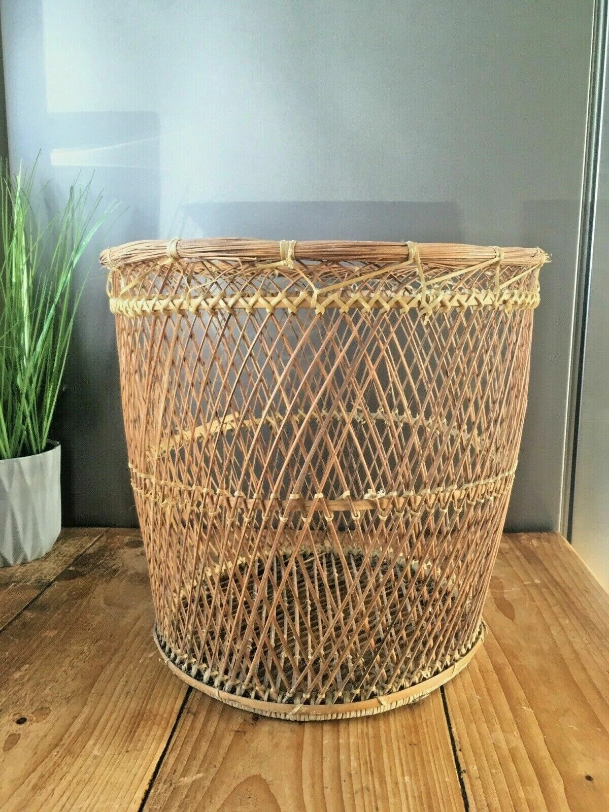 Here we have a fab vintage woven wicker basket waste paper bin. Lovely unusual pieces with a fab Boho look. This has some age to it, I believe it would date from somewhere around the 1950’s or 60’s. A great piece for interior design or would look lovely in your home, especially for someone with a Boho 50’s, 60’s or 70’s theme. Could be filled with soft furnishings such as blankets or throws. It’s quite a good size