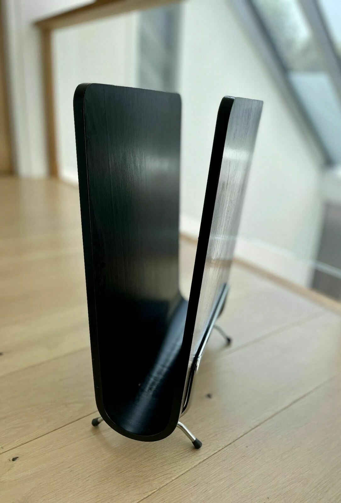 Vintage Bent Plywood Magazine Rack with Metal Stand by Fjords of Norway