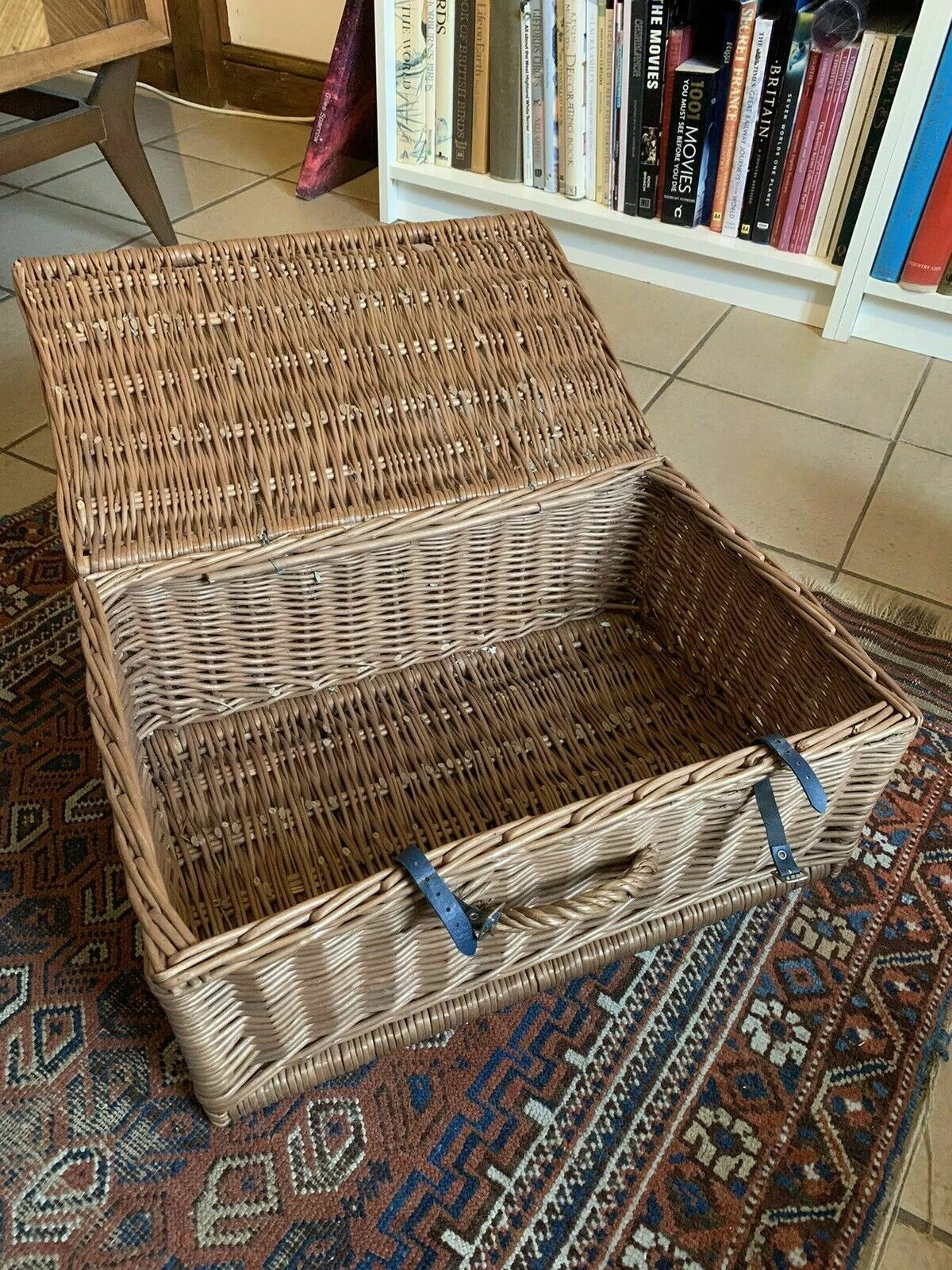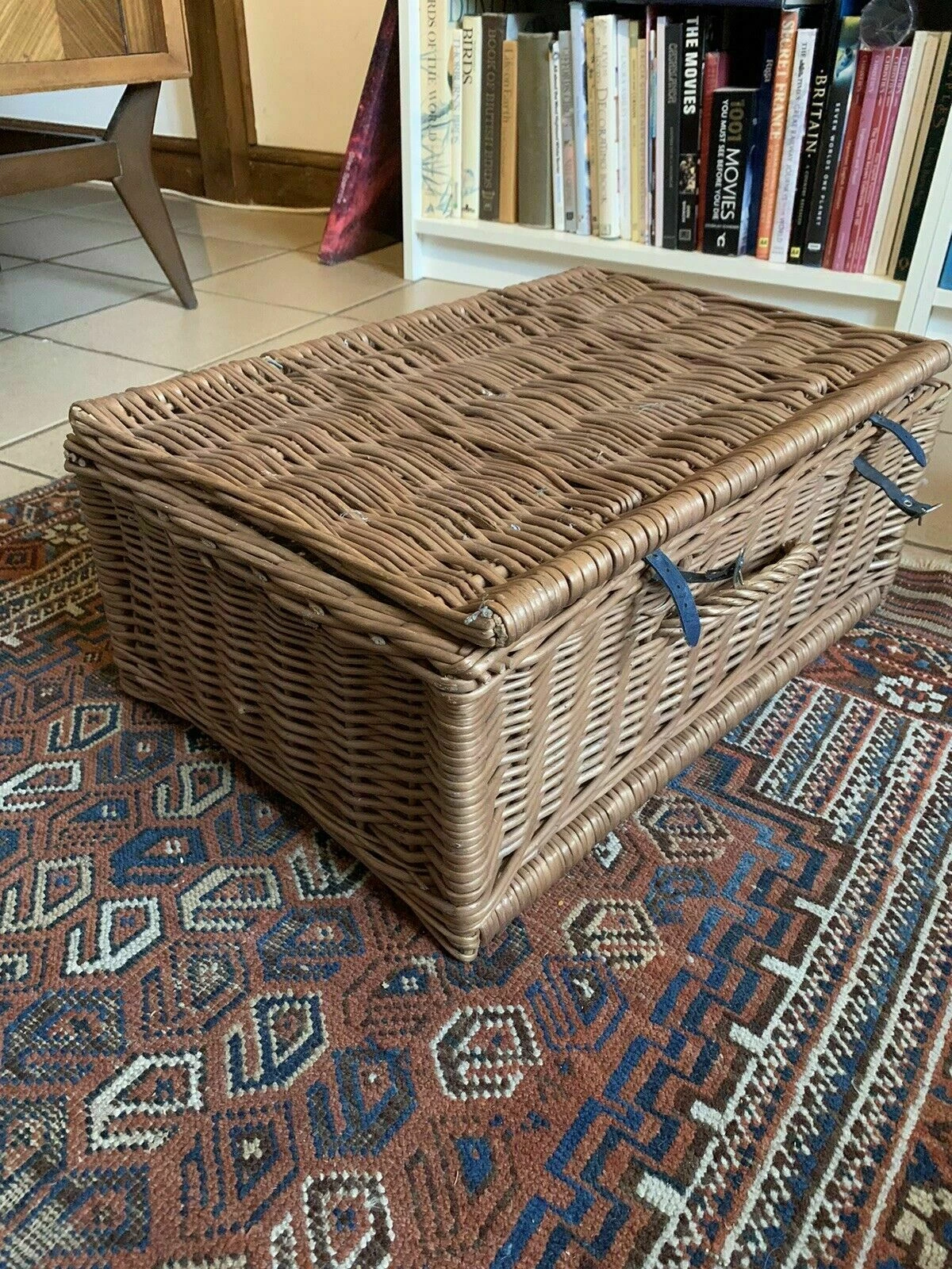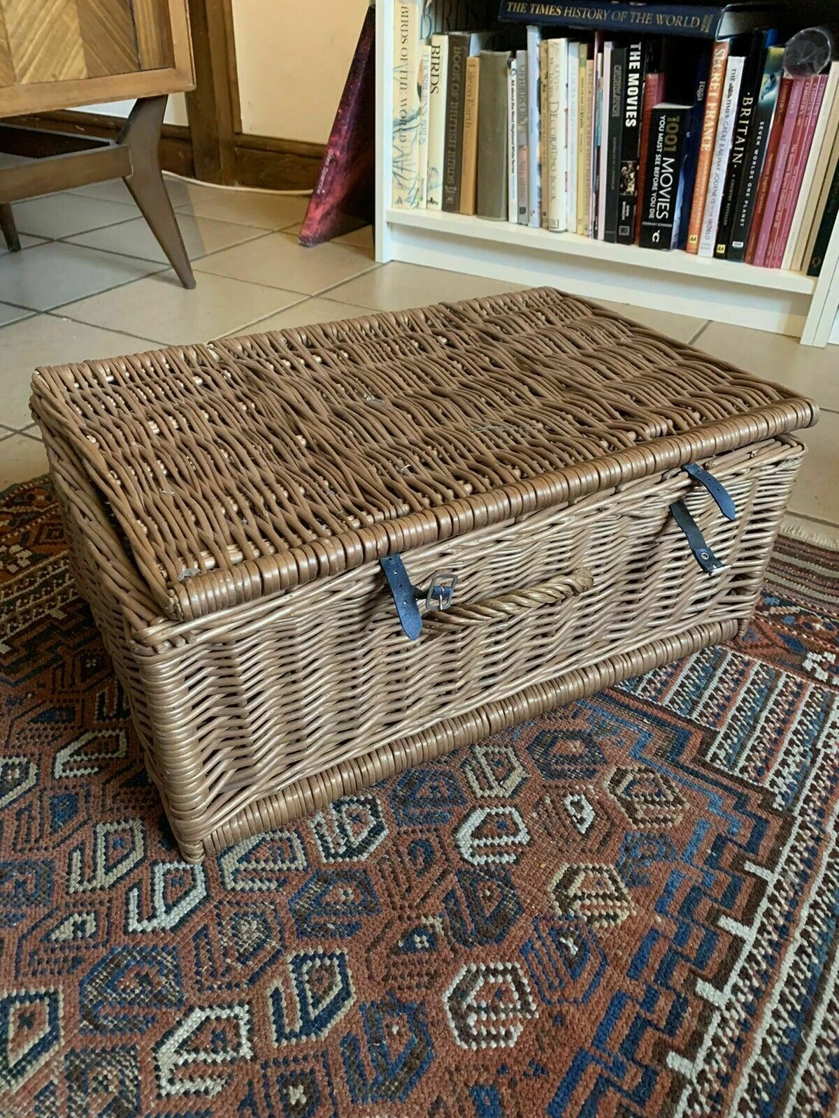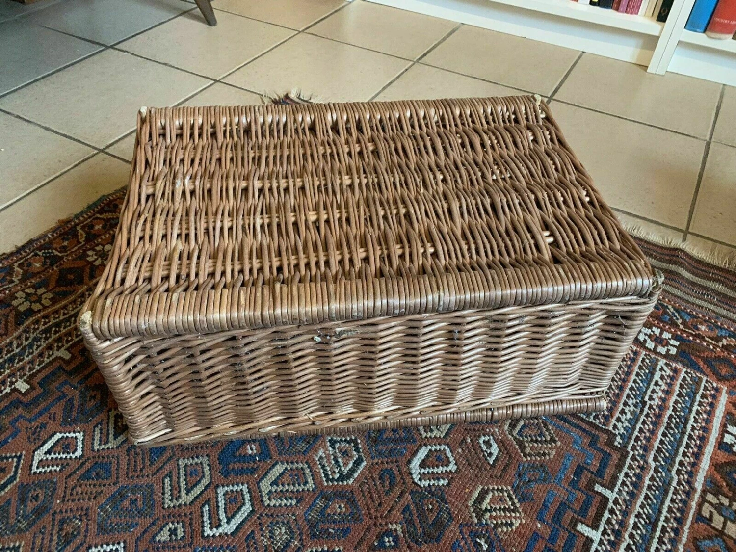 Vintage Cane Hamper Basket. Midcentury, useful, decorative and fashionable.
