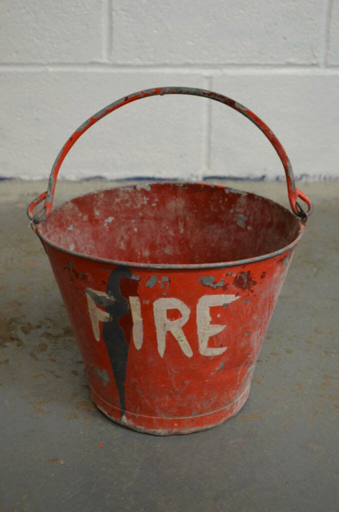 A vintage 20th century industrial style galvanised metal fire bucket with hoop handle that will work really well as a log basket or planter.
