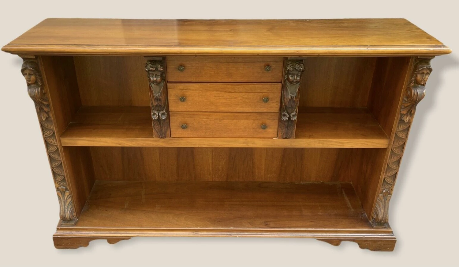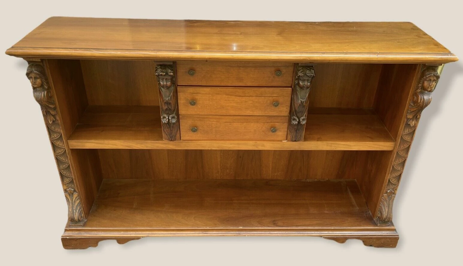 Vintage low bookcase, 1960s, made with salvaged friezes