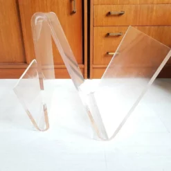 This elegant magazine rack or holder is made of very thick perspex or lucite. High quality but also very heavy (8 kg). The magazine rack has some scratches due to age and usage. Still in very nice vintage condition.