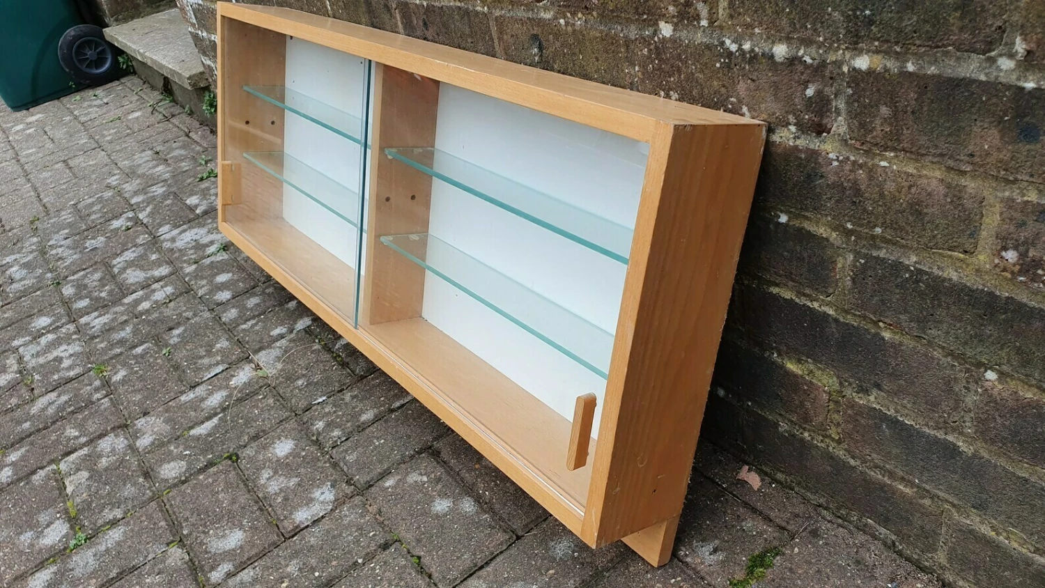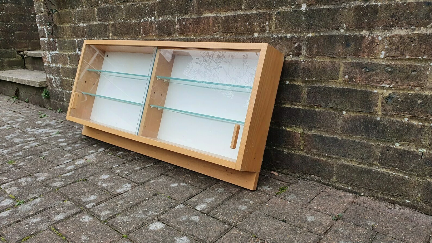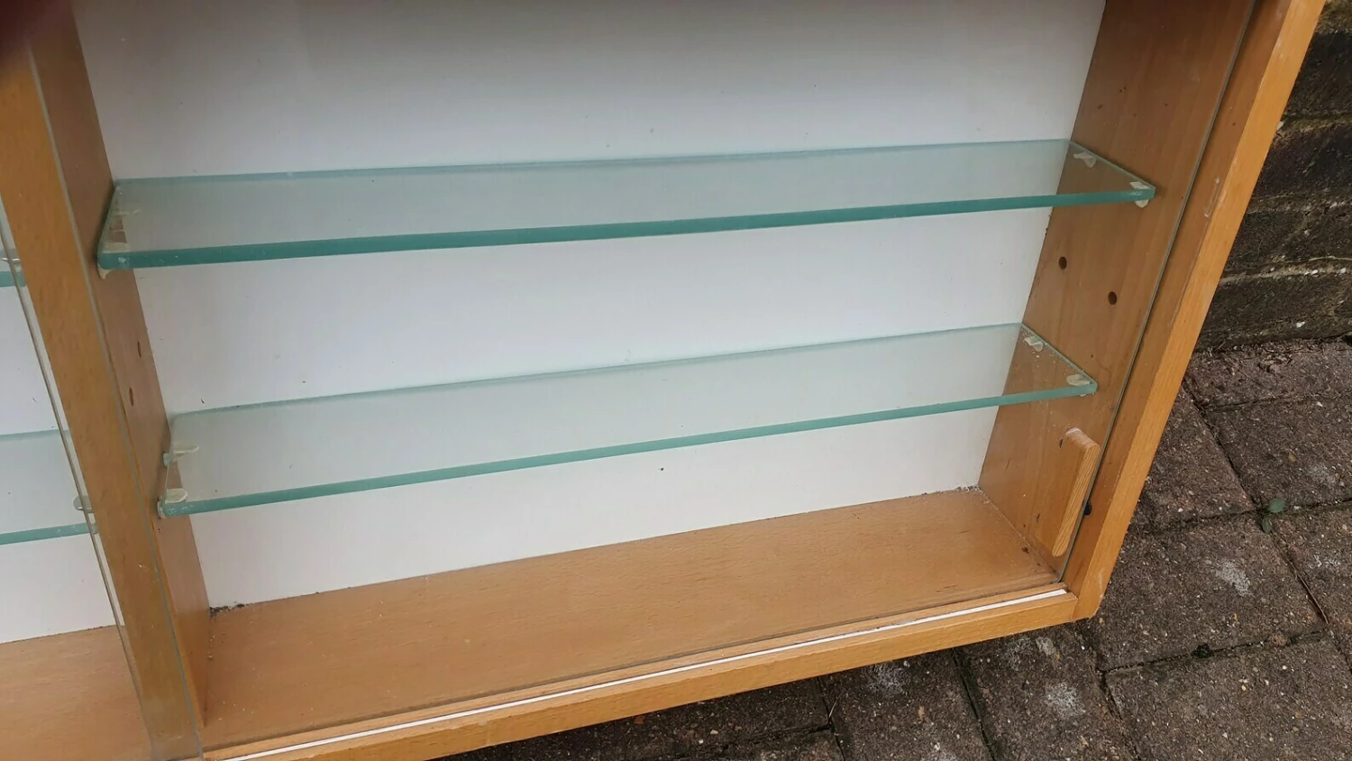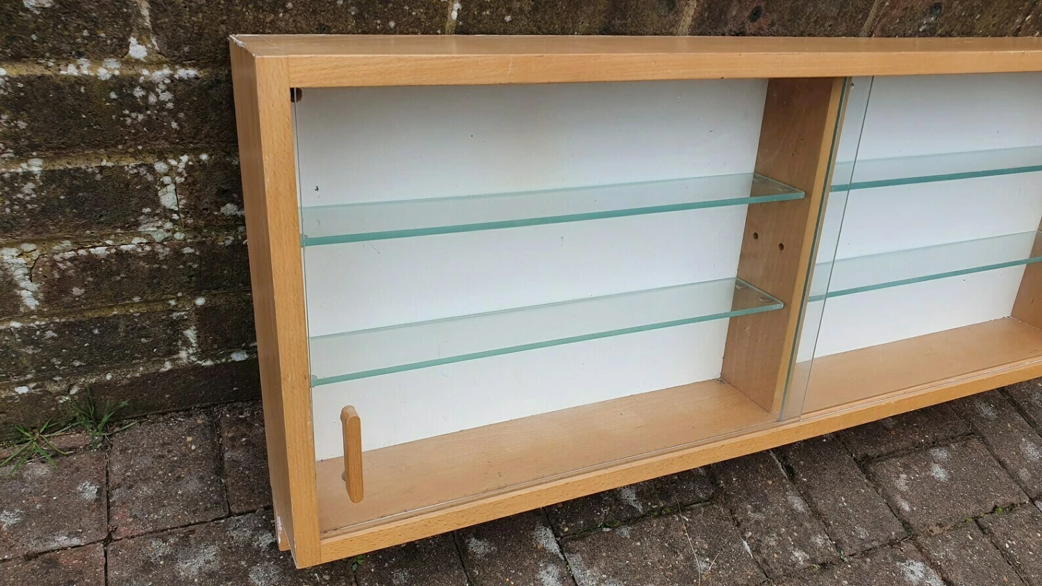 Vintage Retro Glazed Collector Cupboard Cabinet With Adjustable Shelves Solid Beech Bathroom