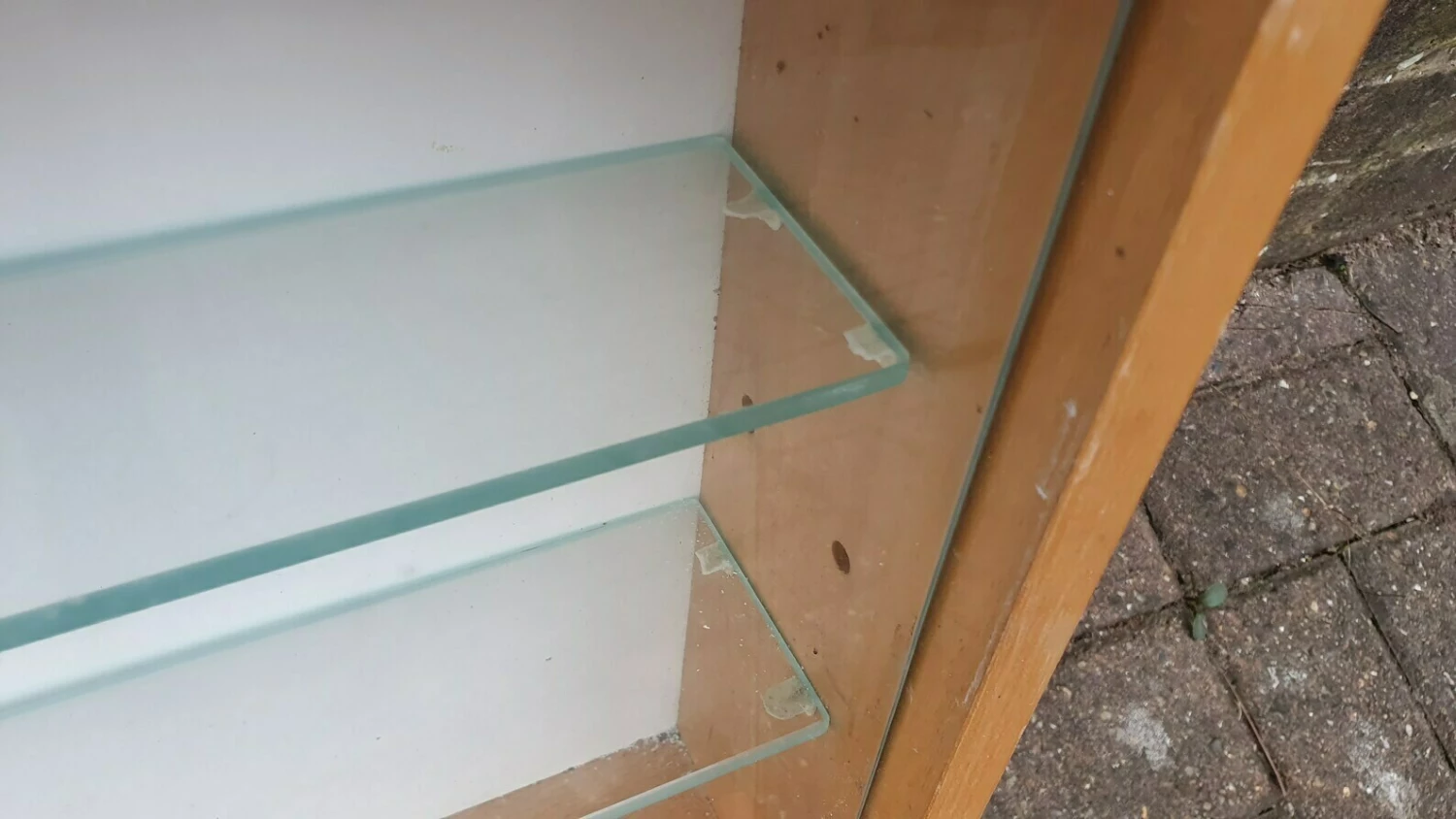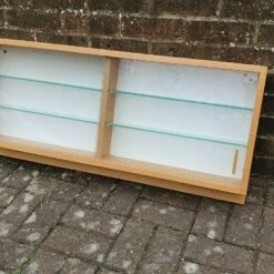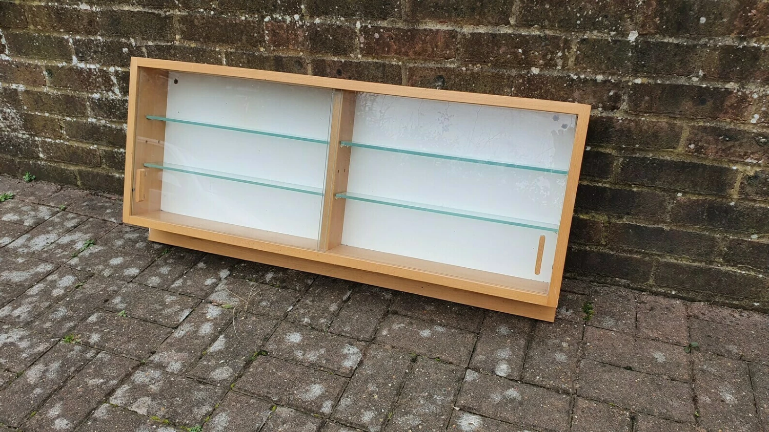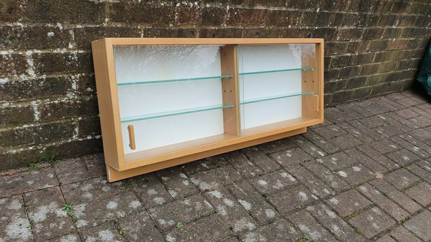 Vintage Retro Glazed Collector Cupboard Cabinet With Adjustable Shelves Solid Beech Bathroom