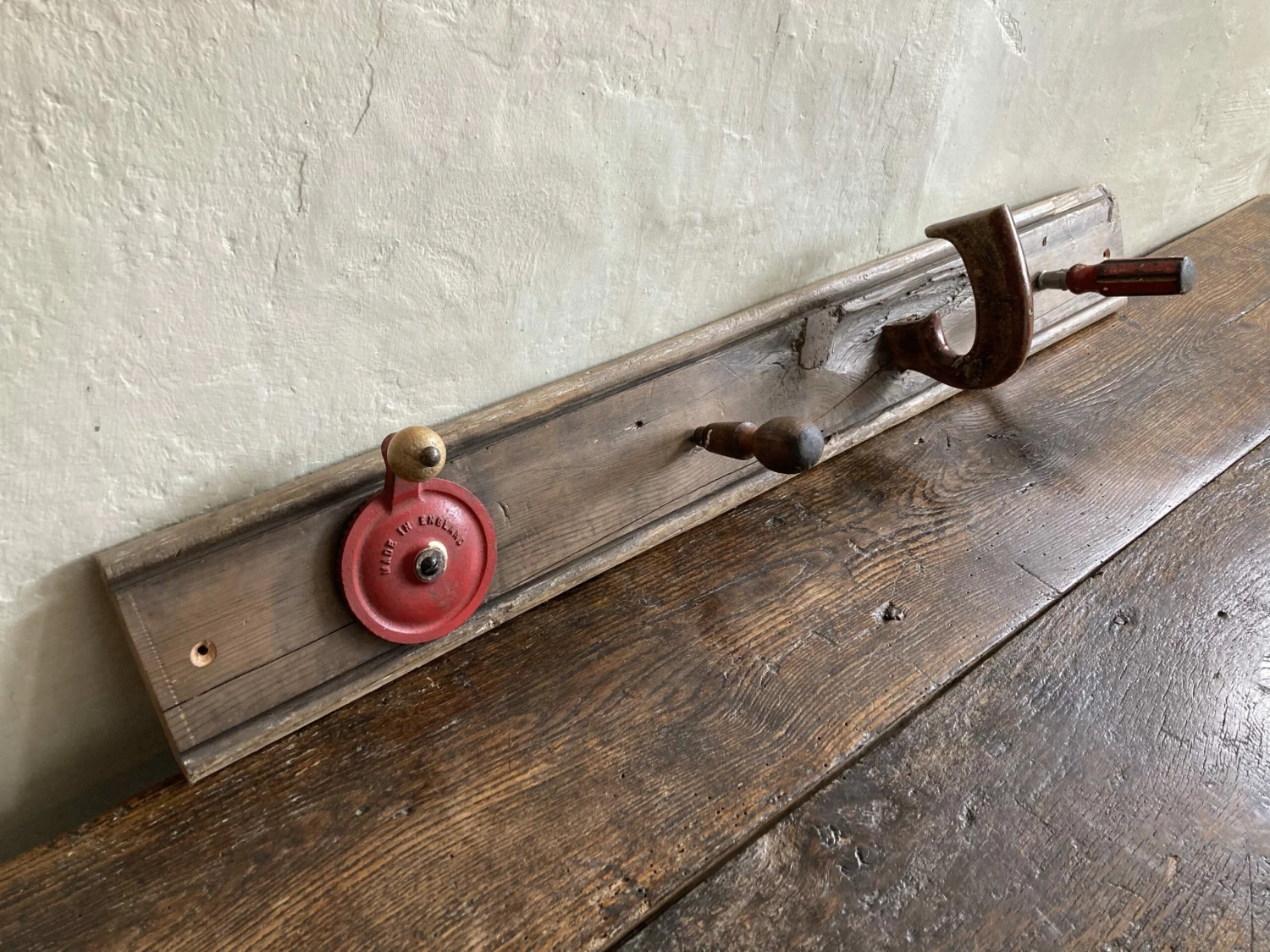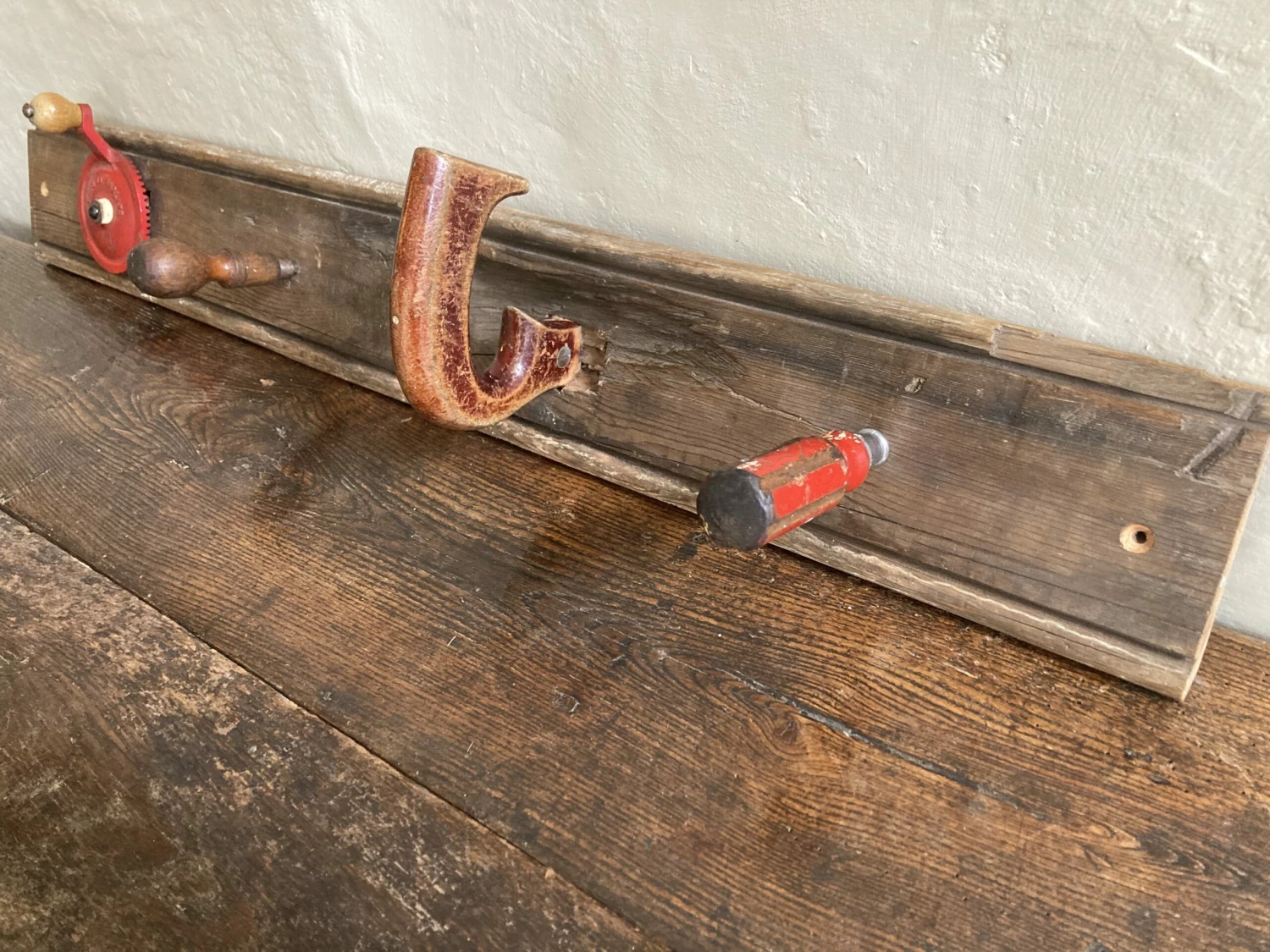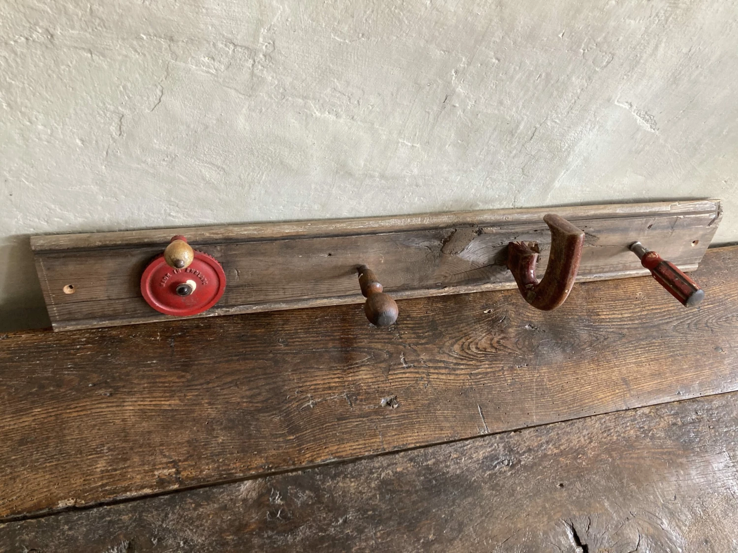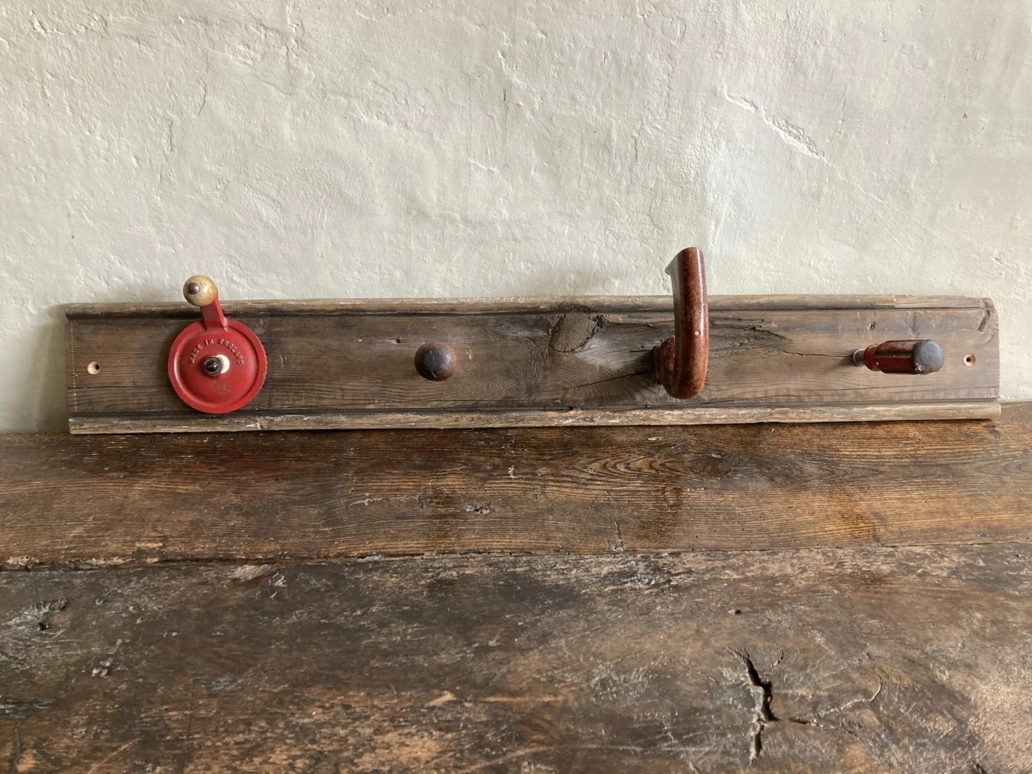 We have designed and made these distinctive hooks from reclaimed timber and vintage tool handles. The carefully selected red coloured tools would compliment any interior. All the materials have great character and patina and have many stories to tell. A talking point in any home and practical too! Each tool is fitted securely and would take light coats, bags, hats, jewellery, etc, A unique and quirky item that could work in any room.