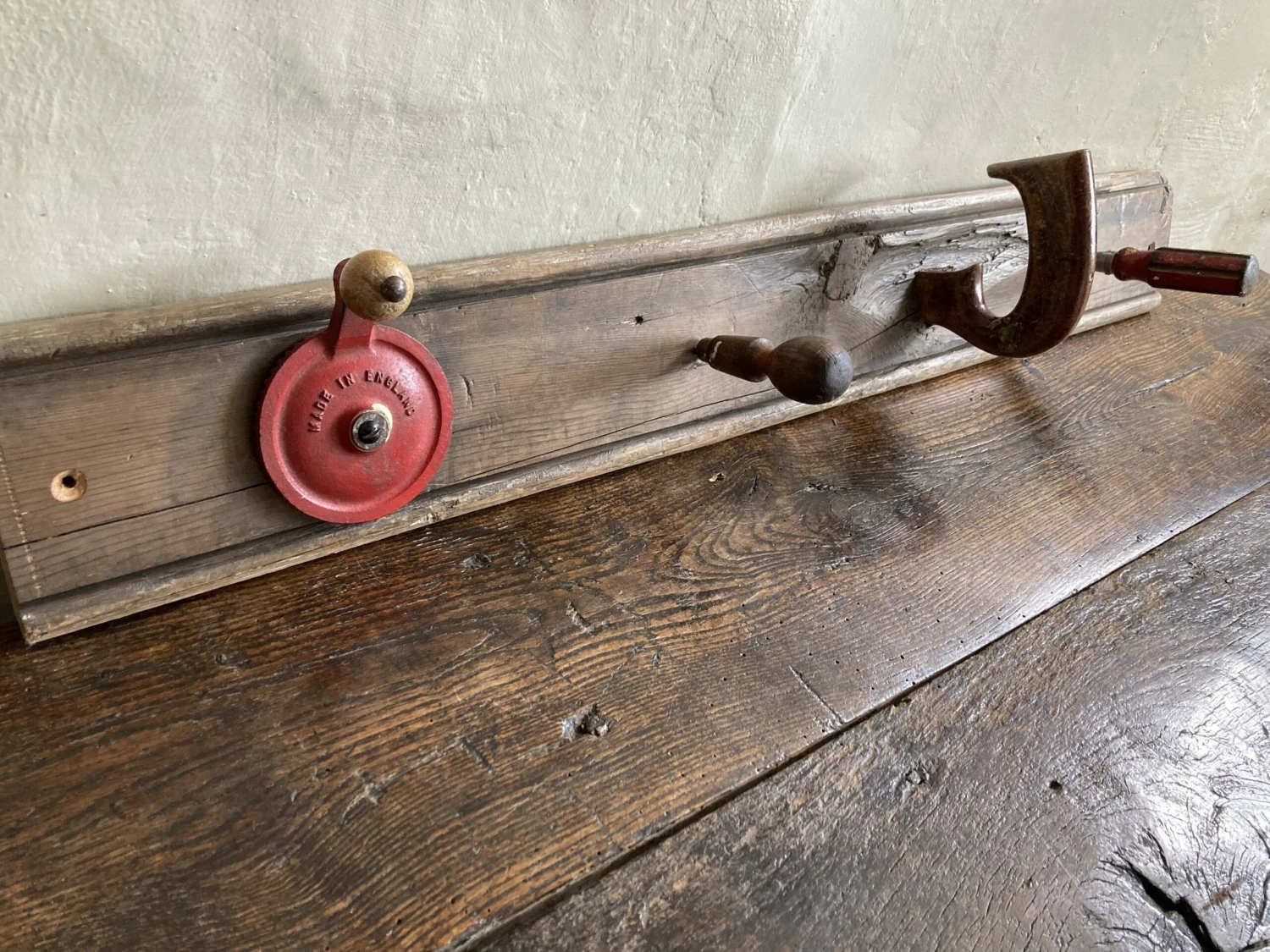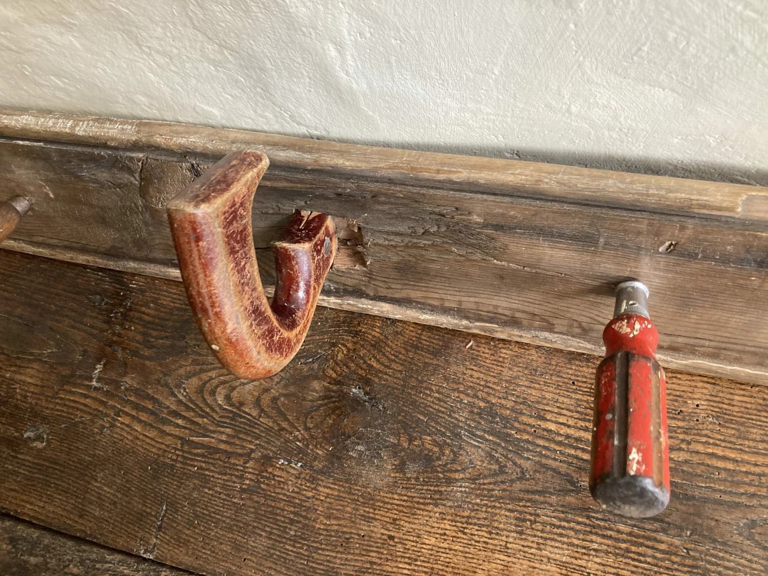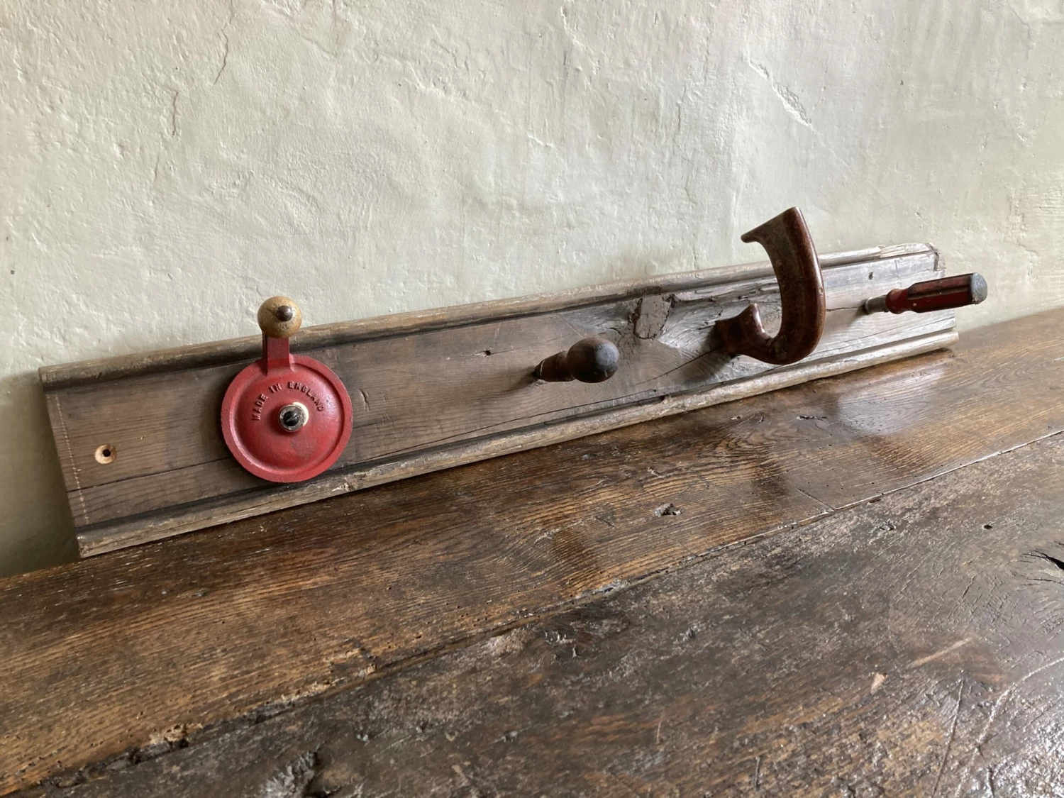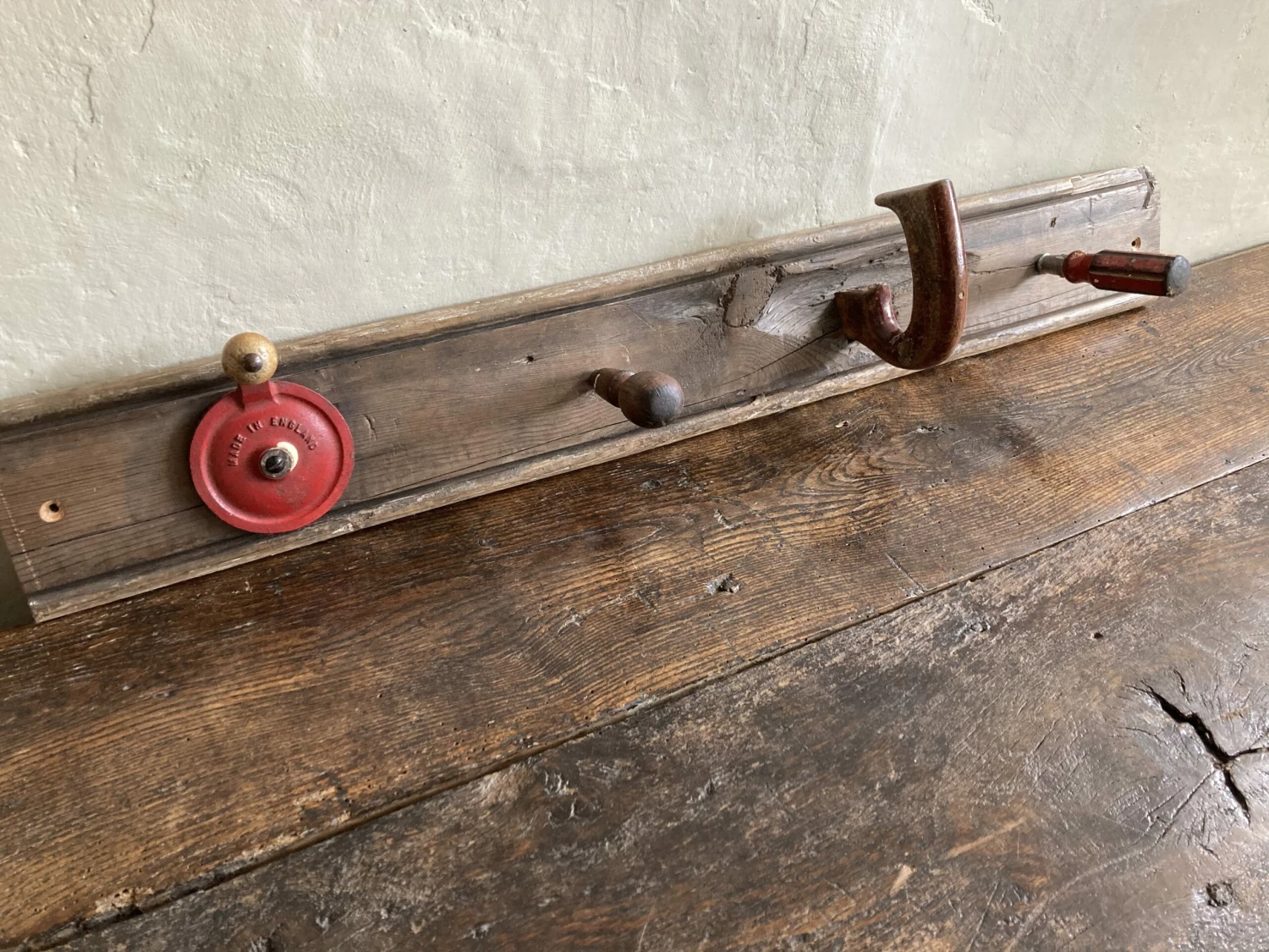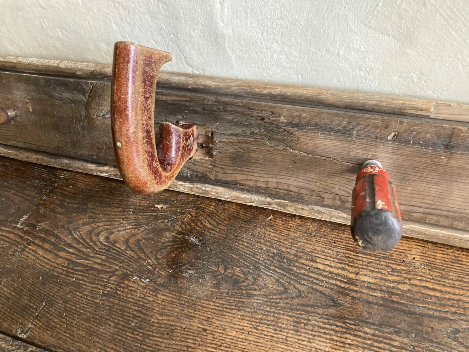 We have designed and made these distinctive hooks from reclaimed timber and vintage tool handles. The carefully selected red coloured tools would compliment any interior. All the materials have great character and patina and have many stories to tell. A talking point in any home and practical too! Each tool is fitted securely and would take light coats, bags, hats, jewellery, etc, A unique and quirky item that could work in any room.