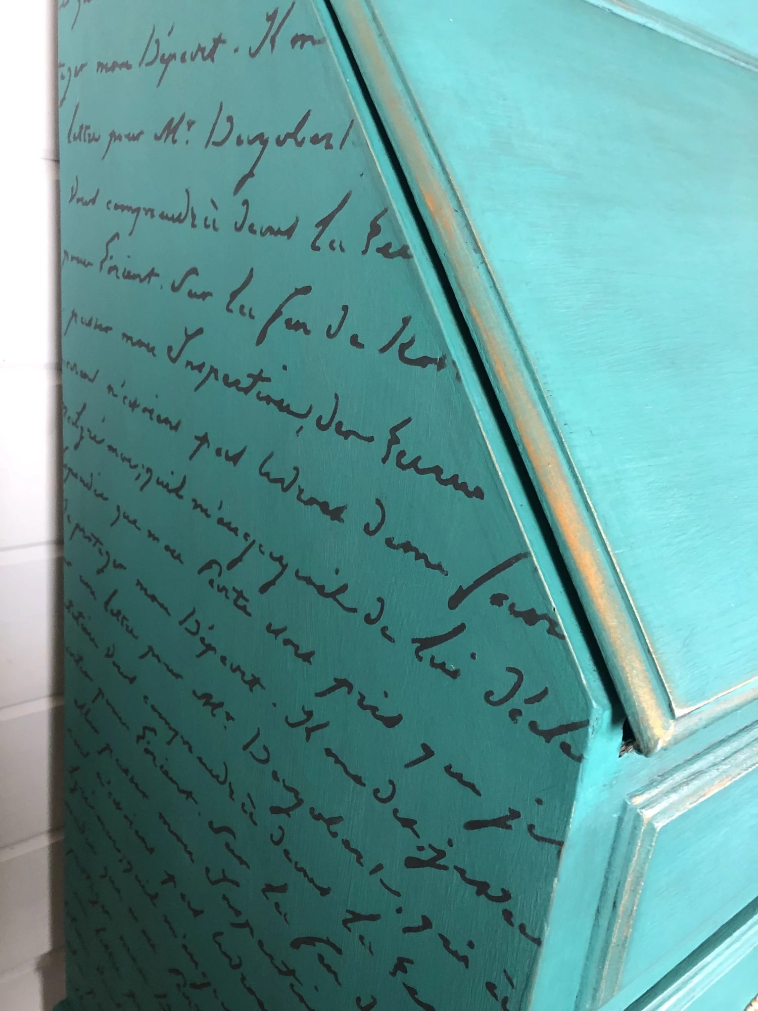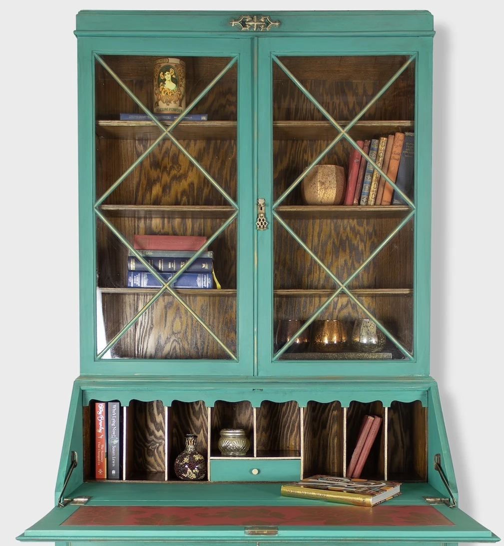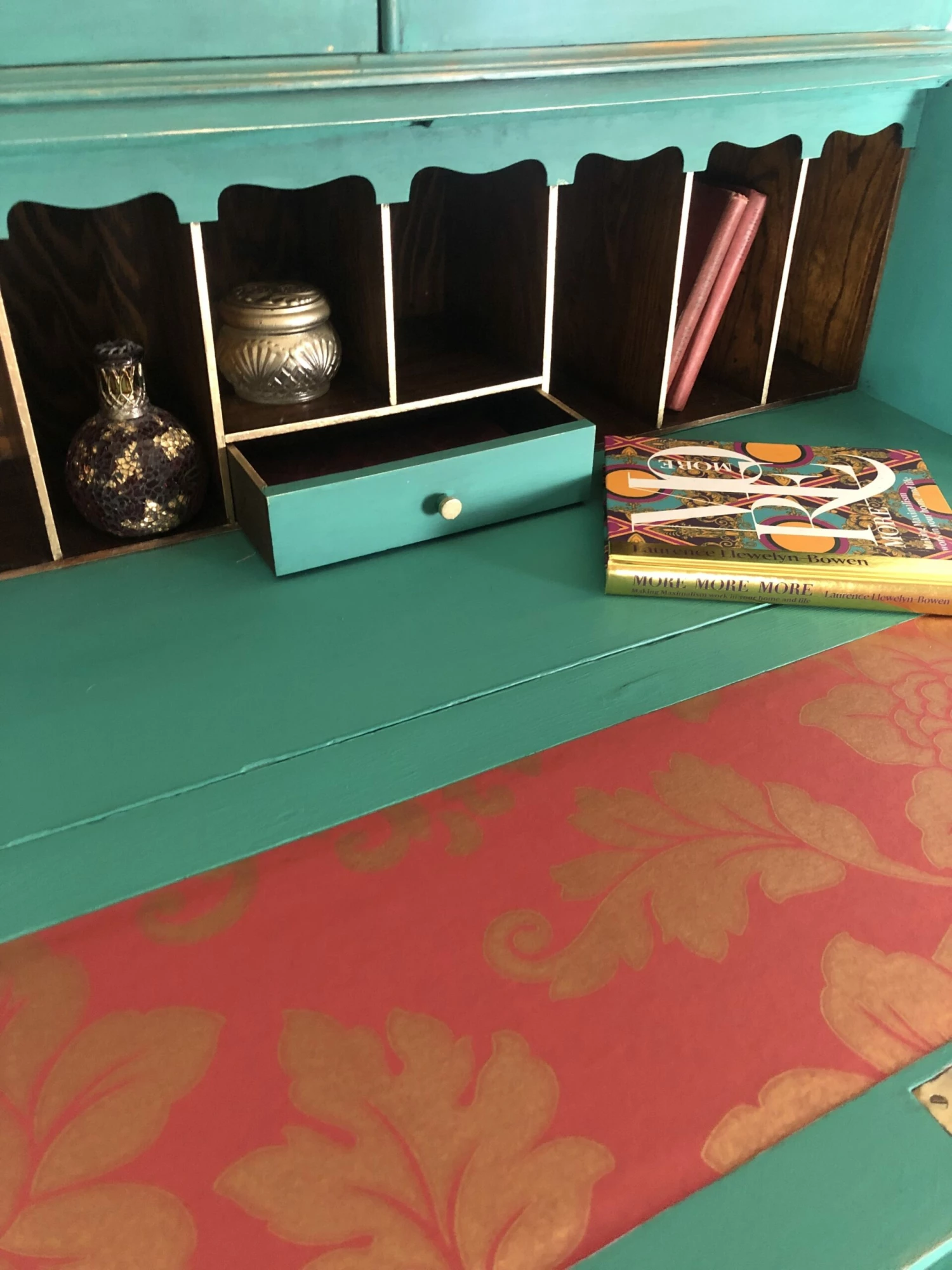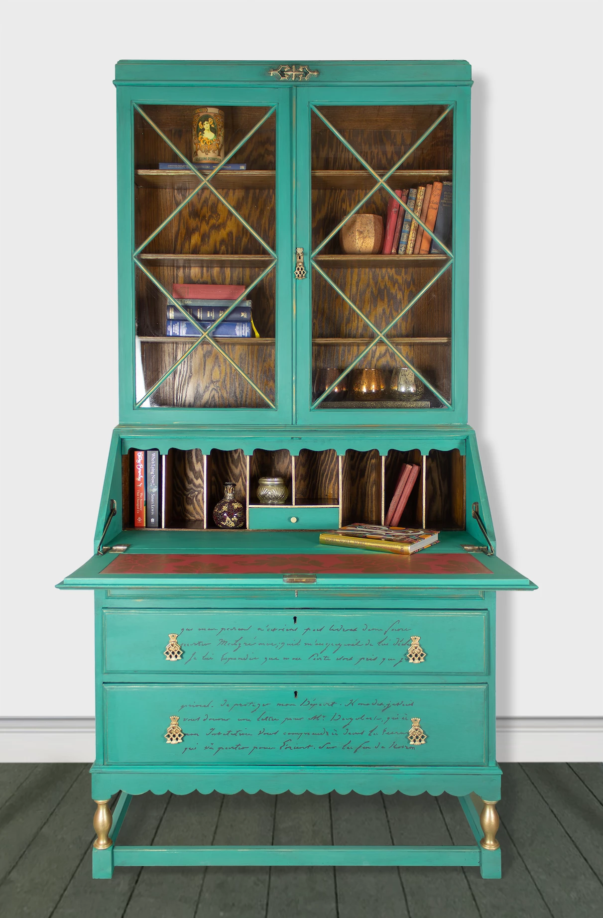 Here is a stunning Writing Bureau, Bookcase, hand painted with Annie Sloan Florence, a beautiful shade of rich Teal.