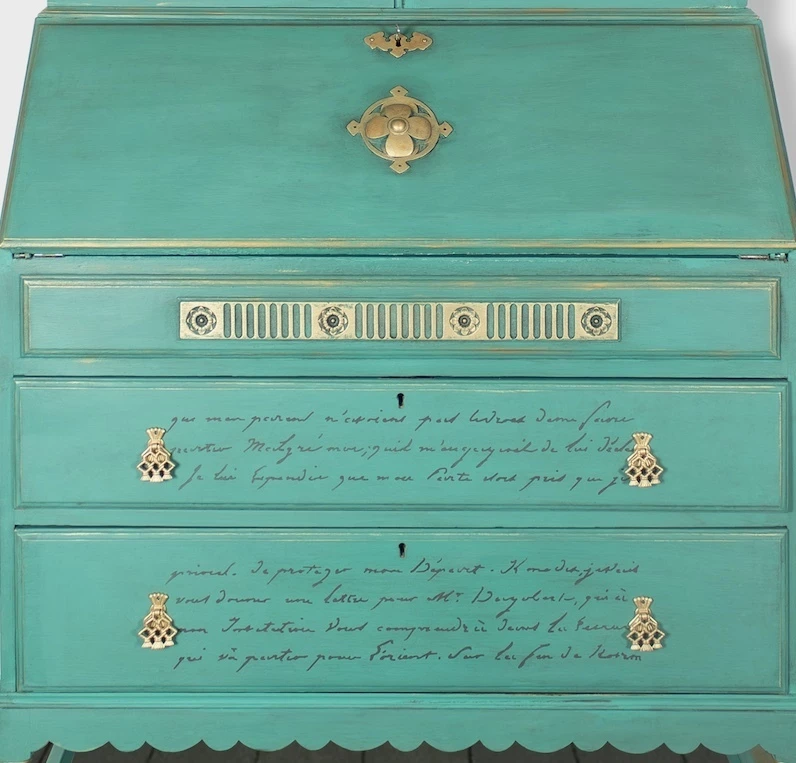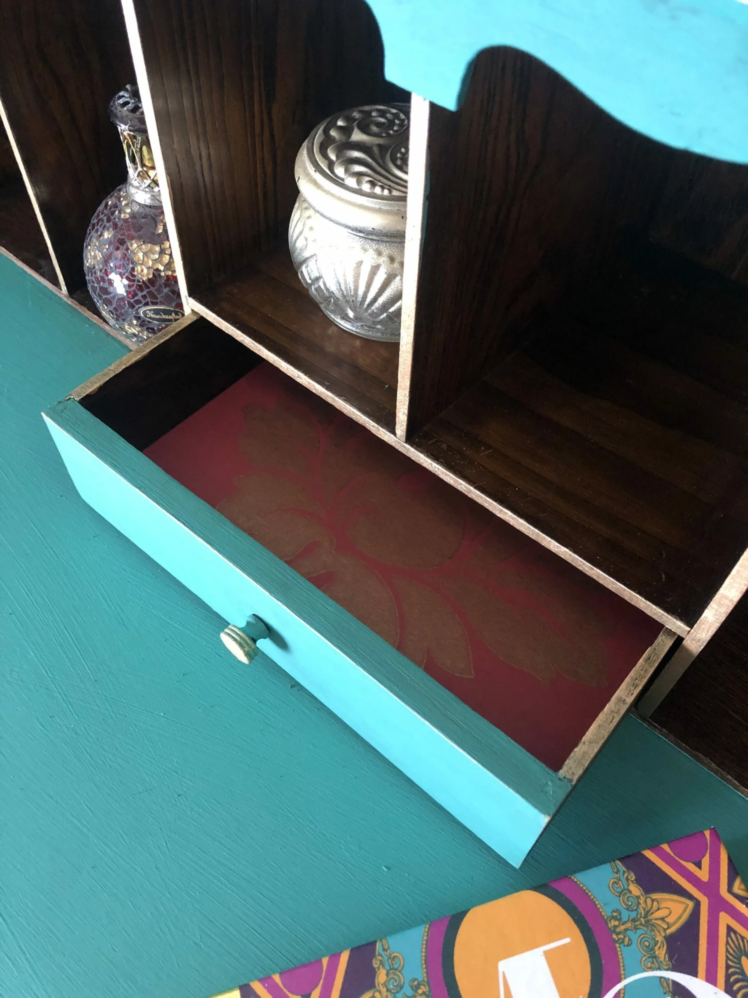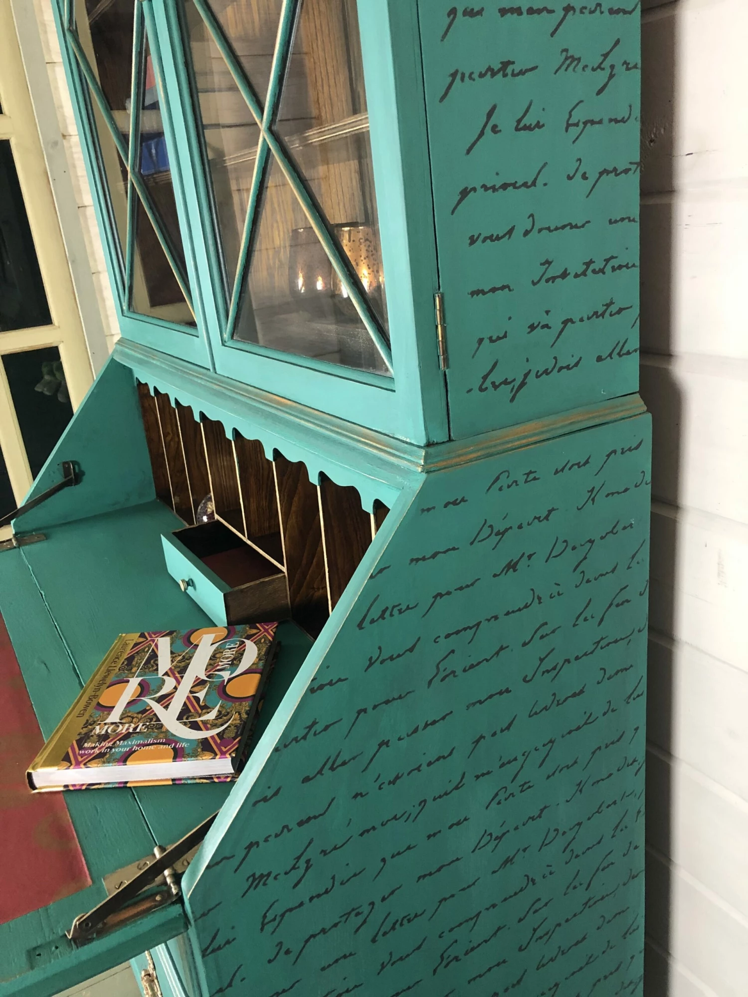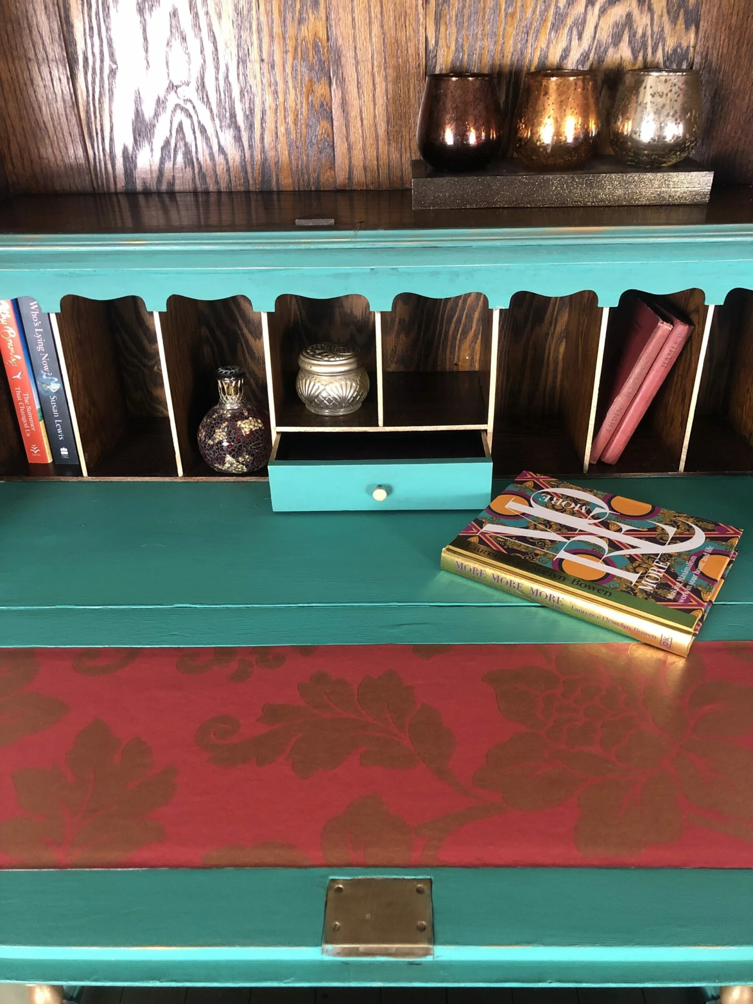 Here is a stunning Writing Bureau, Bookcase, hand painted with Annie Sloan Florence, a beautiful shade of rich Teal.