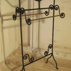 The Towel Rail or Clothes Airer has pretty scroll shaped sides, with an arched beech top rail it has a brass hanging rails on either side, the towel rail is painted in black, the metal is sound and it could be over painted in another colour if required