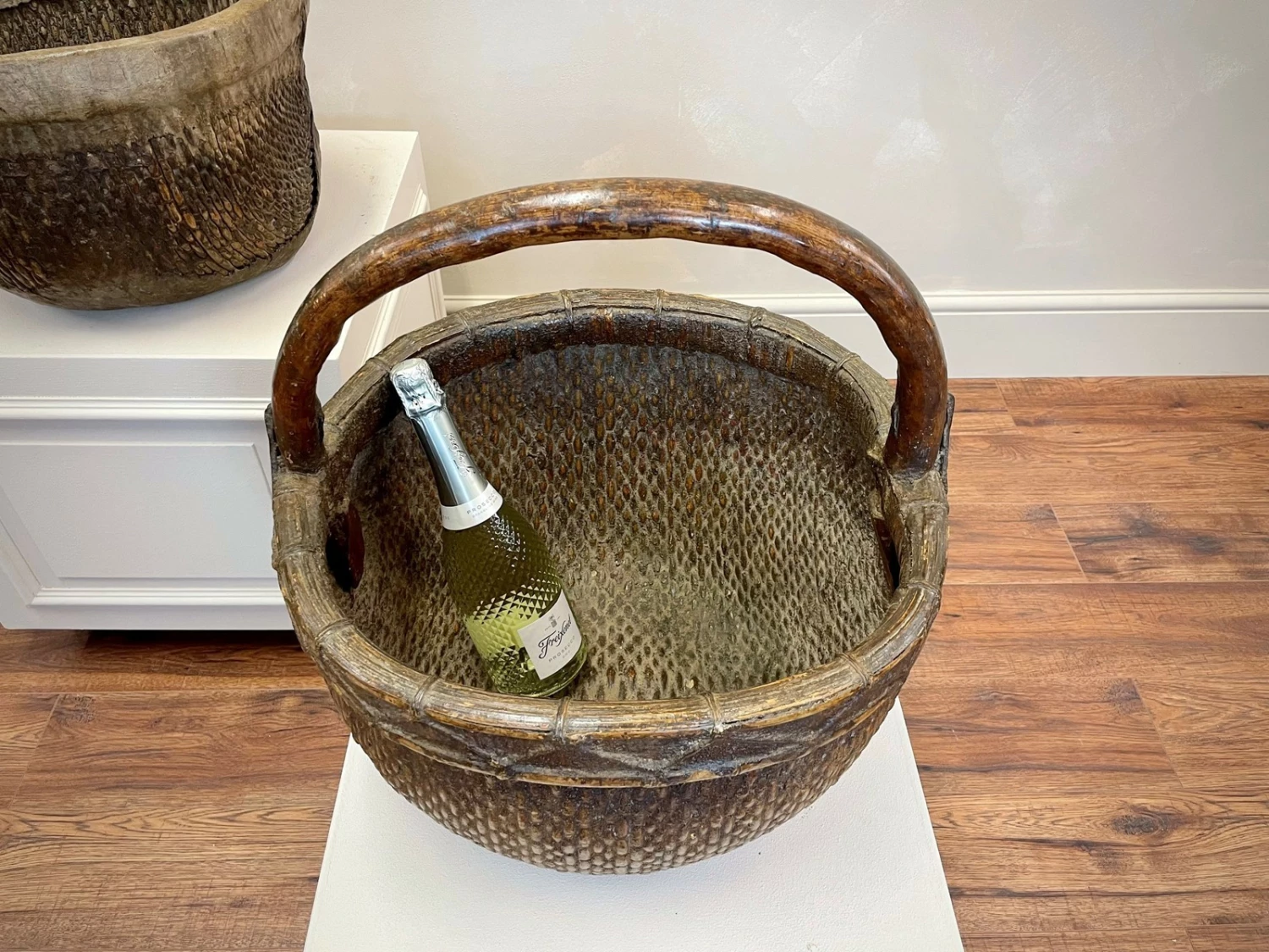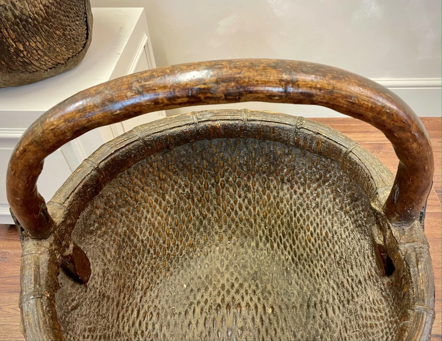 Two beautifully handmade, large, early 20c Chinese woven willow farmers baskets.